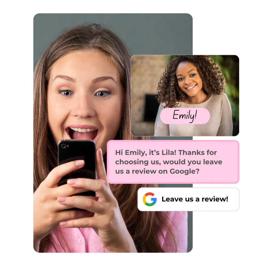 Google review automation simplifies the process of collecting reviews by automatically sending personalized image requests to your customers via email or text after an interaction. We do this by integrating into your existing systems and automating the review request process. It ensures consistent growth in your reviews without extra effort on your part.